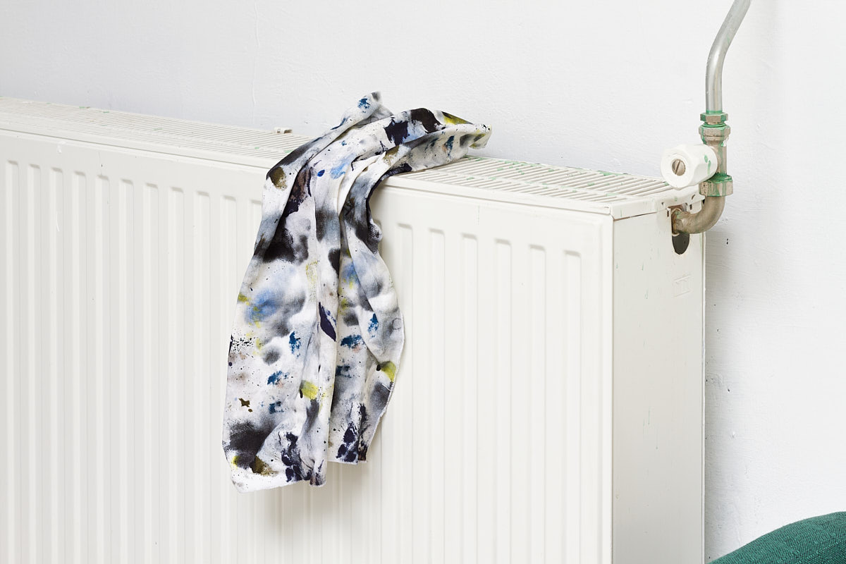 This sculptures evokes rags of the painter that s/he would have left behind. The title opens to those of my mother that were sometimes hanging around the house during my childhood.
